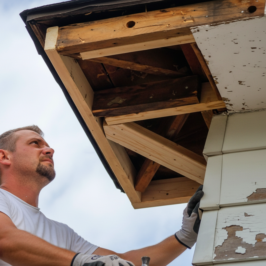 - Siding and trim repair: We replace compromised siding and repair or restore damaged window and door trim, protecting your home from the elements.